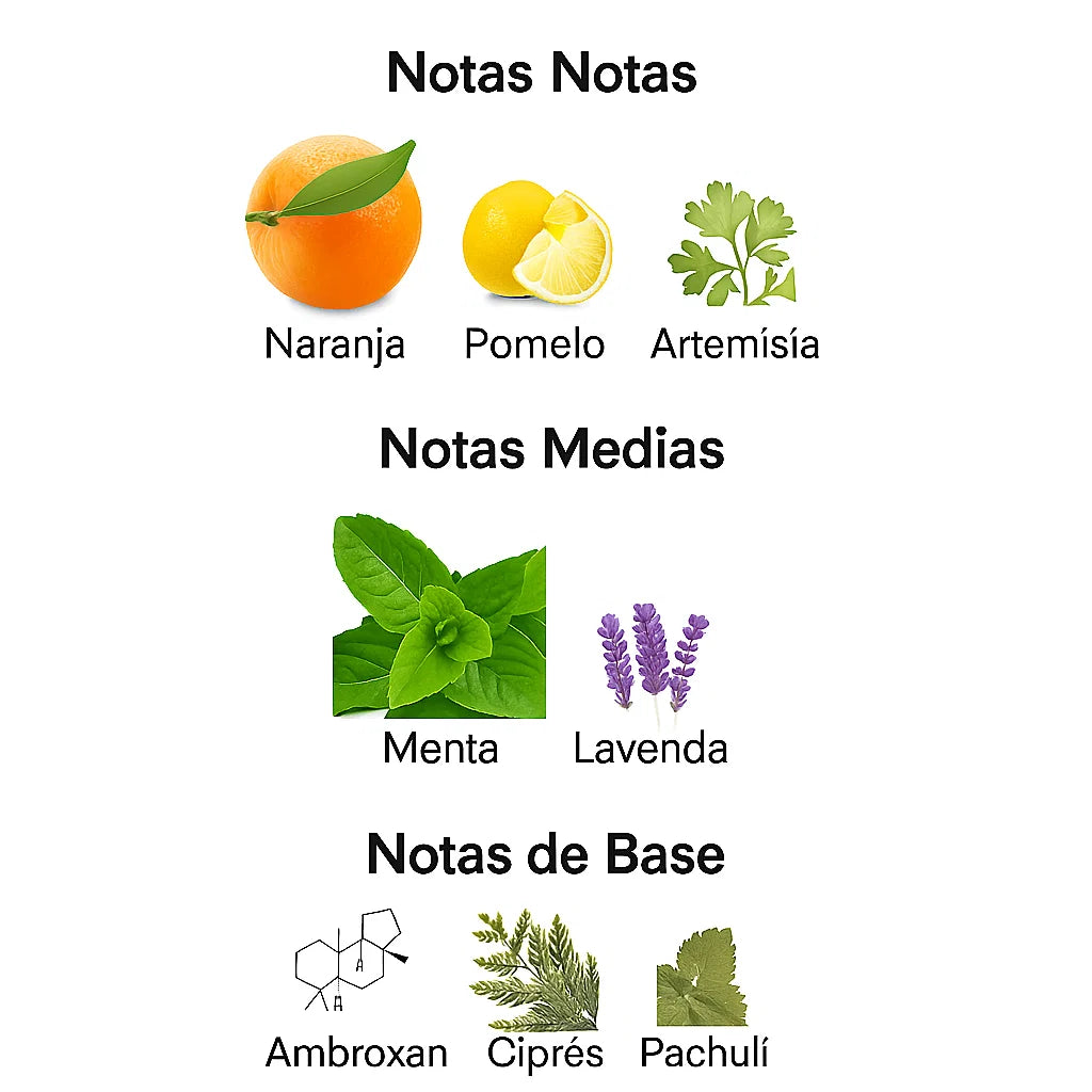 Secado moderno y luminoso con ambroxan de tono mineral–almizclado y patchouli limpio que estructuran una estela clara y masculina. Proyección moderada-alta al principio, luego más cercana a piel; duración buena para un fresco.