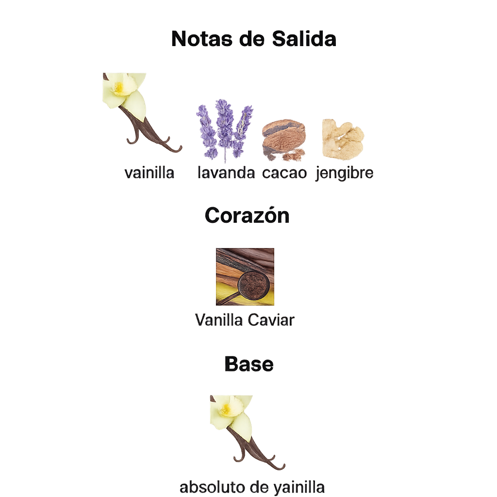 Secado profundo con vainilla absoluta, cálida y adictiva, que se fija en piel con estela suave-seductora. El carácter “trío de vainillas + lavanda” define su firma.