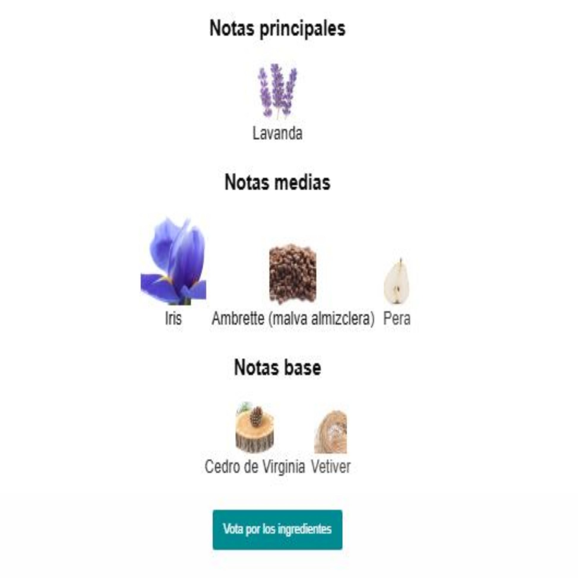 Comienza con lavanda fresca y limpia. A los pocos segundos deja entrever una faceta frutada y suave que prepara el terreno para el iris.