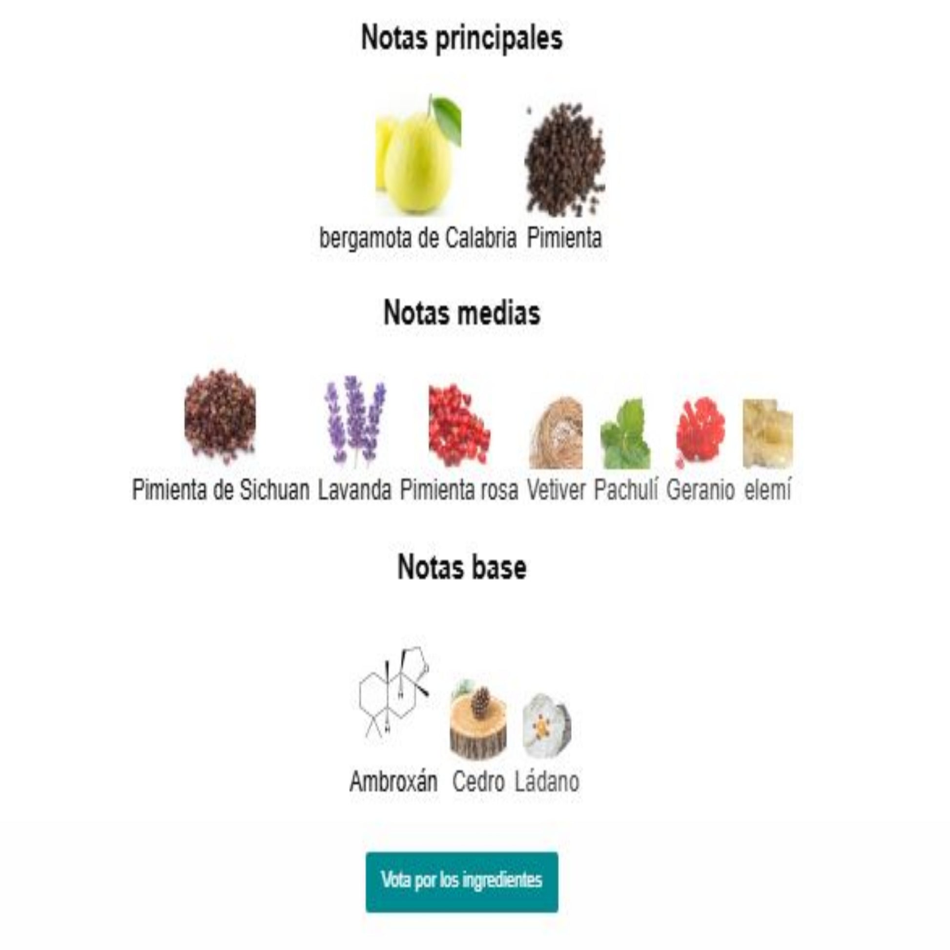 Perfil aromático fougère contemporáneo: cítrico–picante al inicio, corazón herbal–especiado y base amaderada/ámbar moderna. Versátil, directo y fácil de usar a diario o de noche.