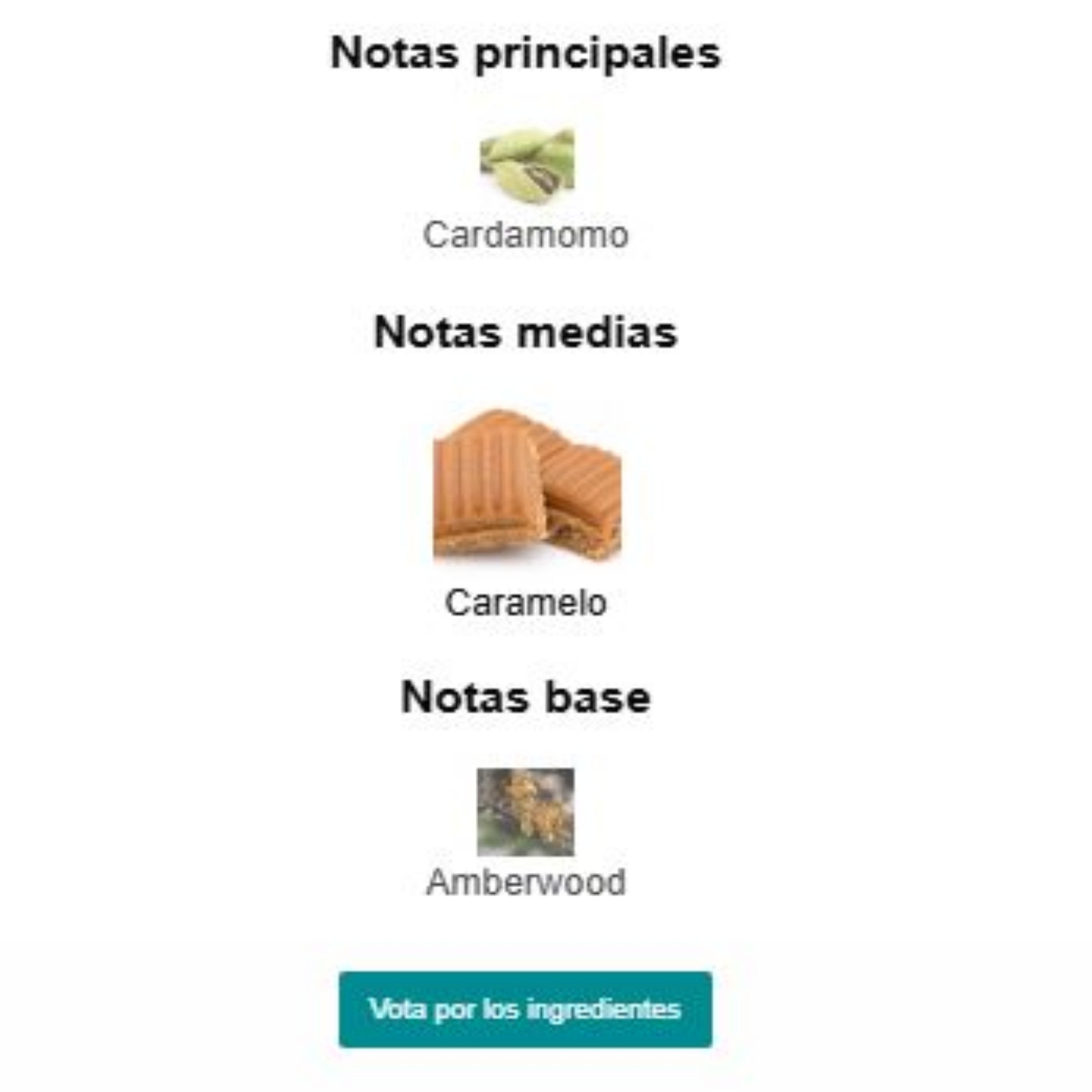 Perfil fougère ambarado con giro gourmand: cardamomo brillante → corazón toffee adictivo → base amaderada ámbar. Sensual, nocturno y directo a cumplidos.
